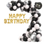 Set Decor Party – Arc Ghirlandă cu 83 Baloane Negru, Argintiu, Alb + Banner "Happy Birthday"